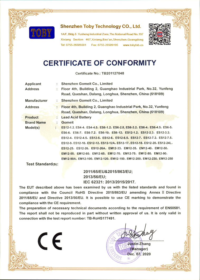 铅酸电池ROHS证书