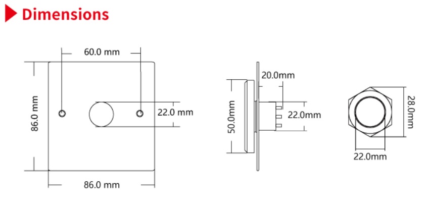 产品尺寸: 86 x 86 x 20mm