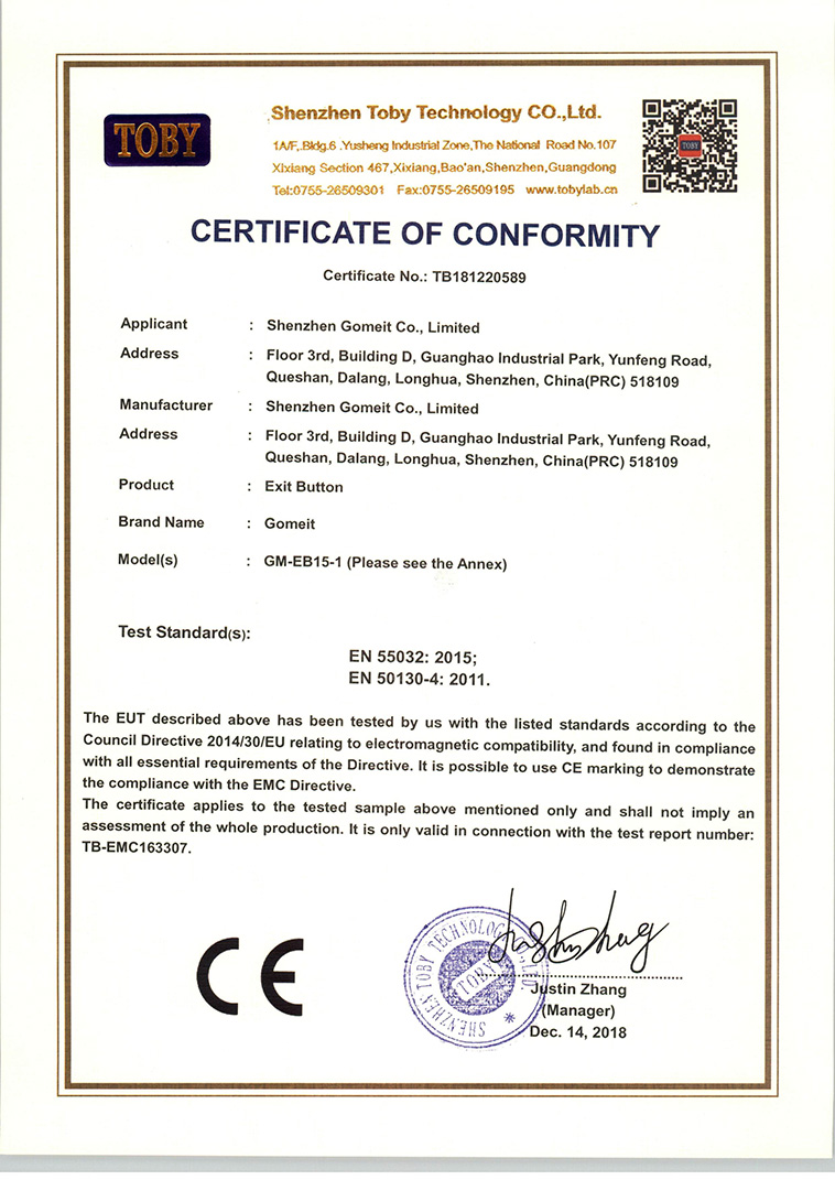 出门开关CE证书 1/2