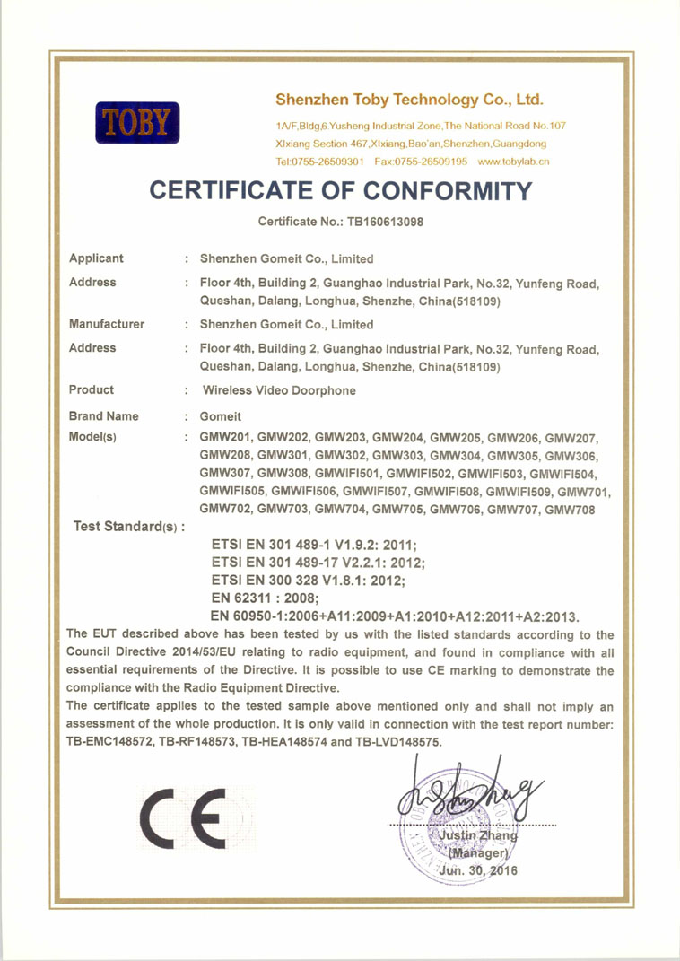 有线可视门铃CE证书2/2